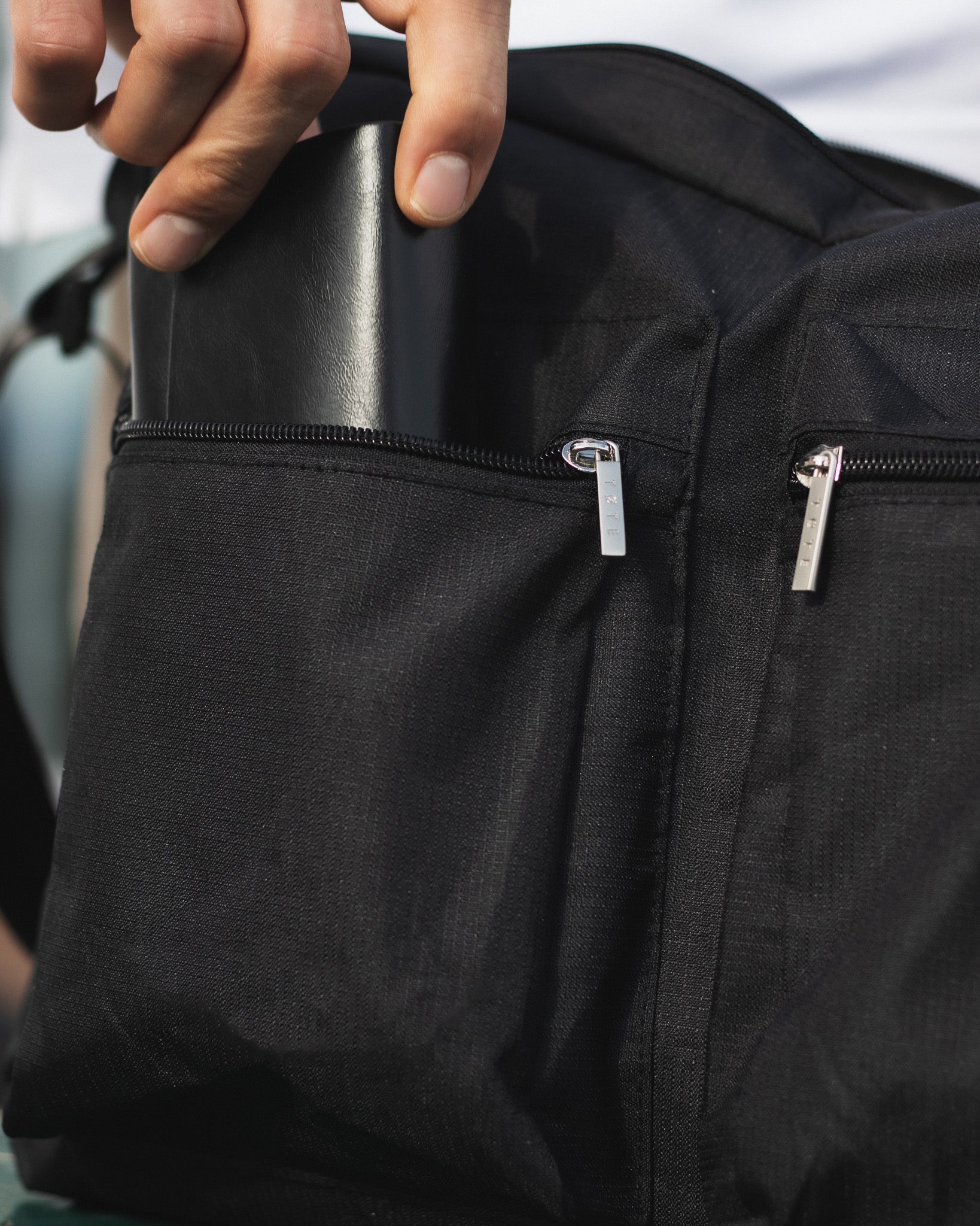 Our newest crossbody: 7 zipped compartments, water-resistant fabric, adjustable strap, timeless form.